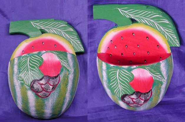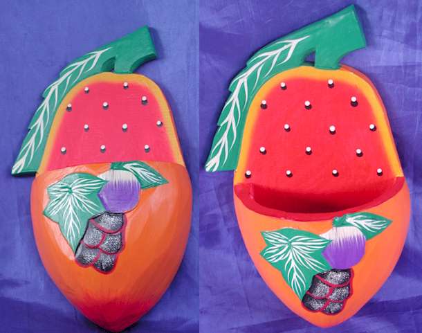 Room Decoration Painted Wood Hanging Utility Basket Handicraft Accent Art