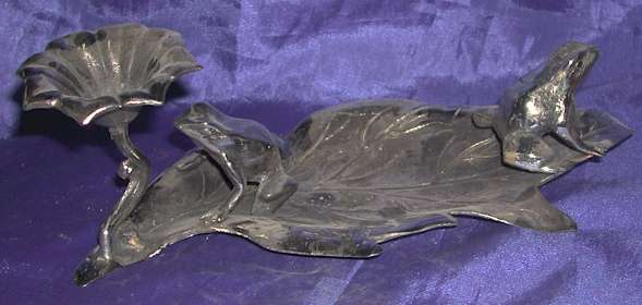 Silver Plated Bronze Tray with Flower and Frog